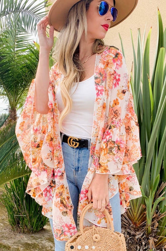 Floral Print Ruffled Kimono