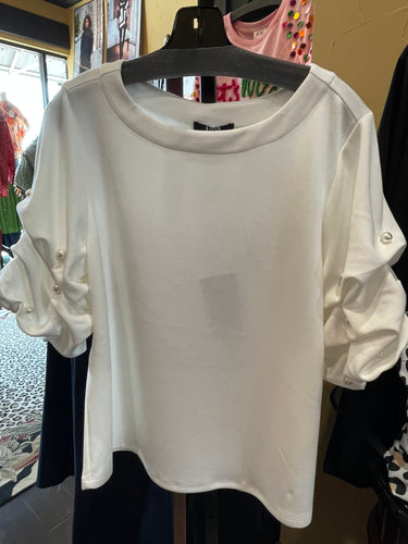 Lior Zila Round Neck Puff Sleeve Top W/Pearls